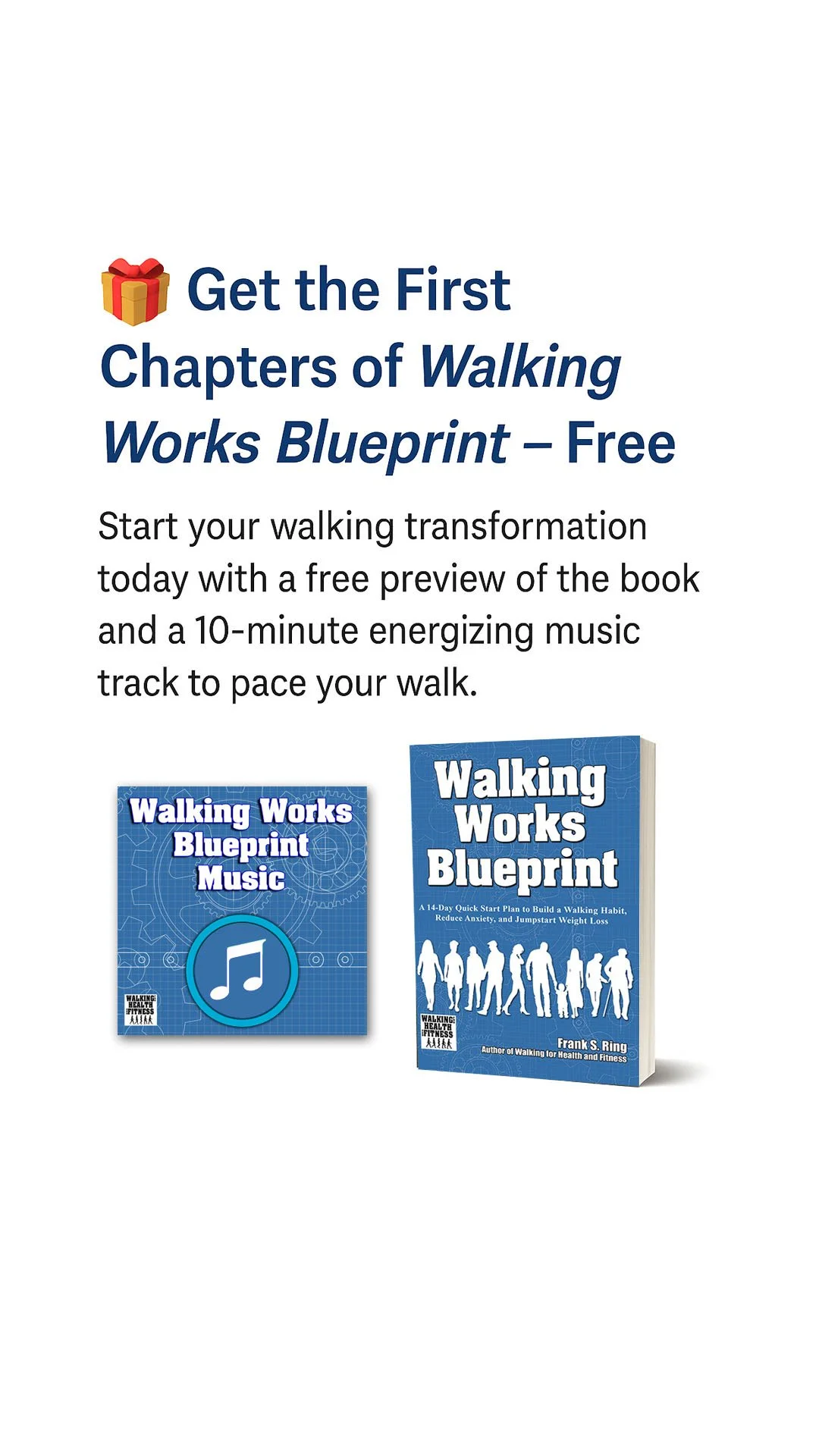 If you’re ready to go deeper, I’d love to give you a free preview of my Walking Works Blueprint book, plus a bonus music track to walk to. Inside, you’ll discover how to build a walking habit, reduce stress, manage your weight, and make fitness a sustainable part of your life.