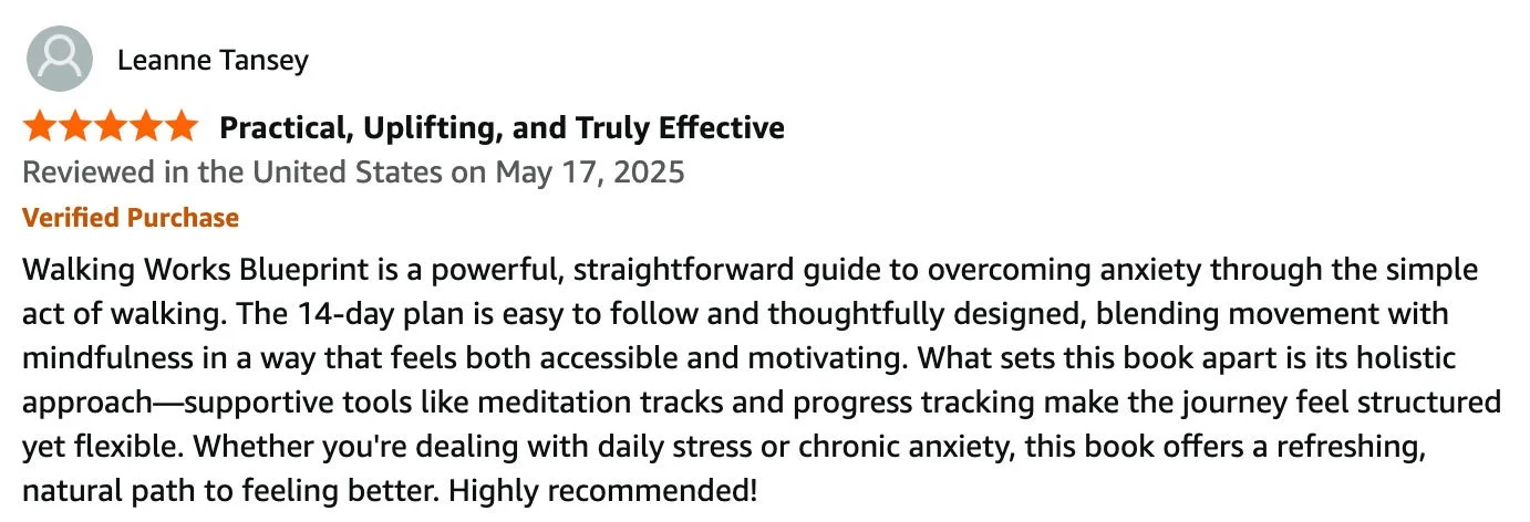 That’s why I’m giving you the first chapters of Walking Works Blueprint completely free, along with a 10-minute acoustic walking music track designed to help you step into a new rhythm — physically and mentally.